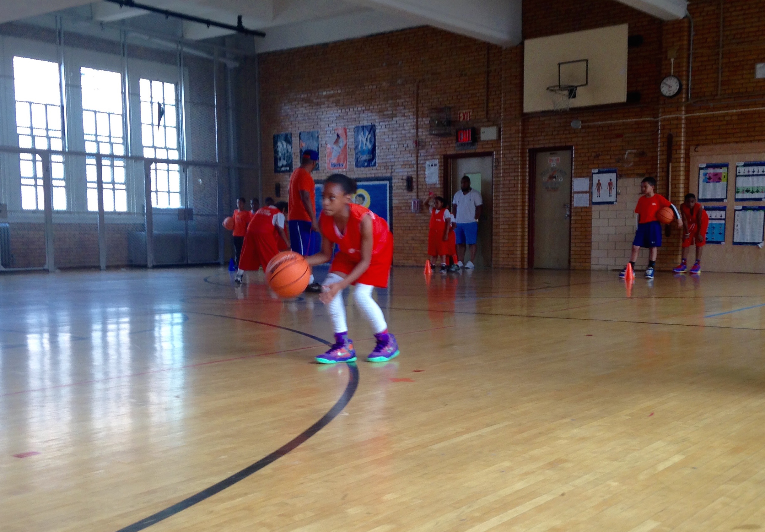 Watching her, I was transported back in time, remembering what it was like to learn the fundamentals of the game. Even from the sidelines, I could tell this fifth-grader had a fire inside her. Standing at the baseline, Winter focused on taking in every word coach was saying. She worked on her dribbling with her knees bent (knee pads and all), head up and one arm out to protect the ball so nobody could steal it. I could tell she took this game seriously as she raced through her sprints, finishing before most of the boys and when the group made a mistake or was not listening she was the first one running to the baseline when others were dreading another sprint.