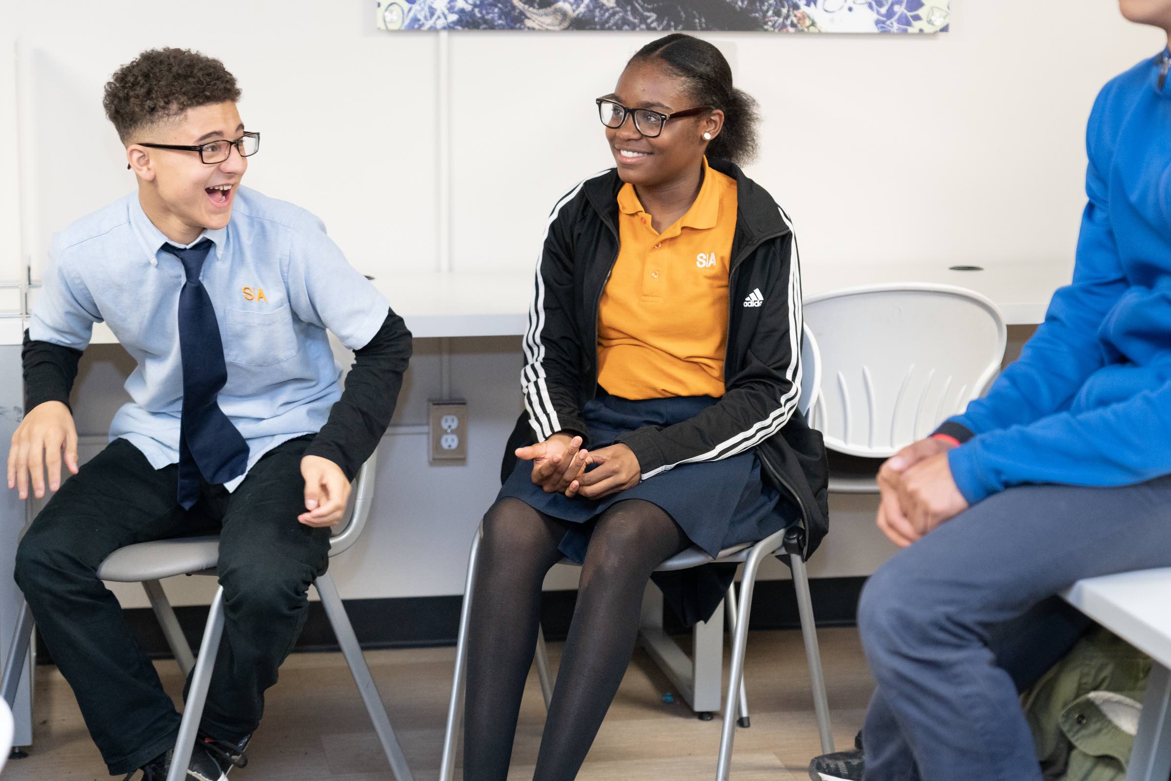 High school scholars have free periods to for studying, meeting with deans or teachers, and bonding with classmates. In the “get things done room,” scholars can find a comfy place to read, chat, or finish their homework. Rising 9th graders appreciated the chance to pose questions about high school life to current scholars.