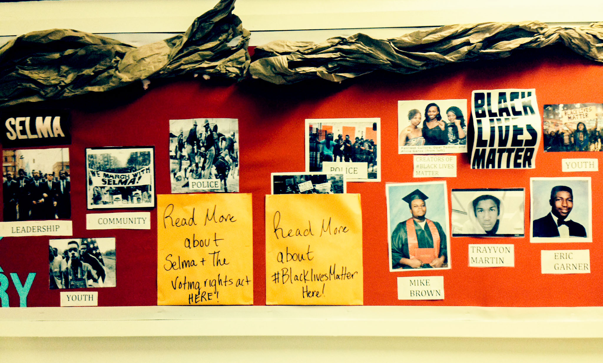 Mr. Cain says the images triggered a variety of emotional responses and ultimately inspired his students to write poems for the magazine. These poems are now part of a bulletin board display at the school, next to other bulletin boards carrying the slogan, “Black Lives Matter.” Families who attended the school’s Black History Month celebration on Feb. 26 were able to read these poems.