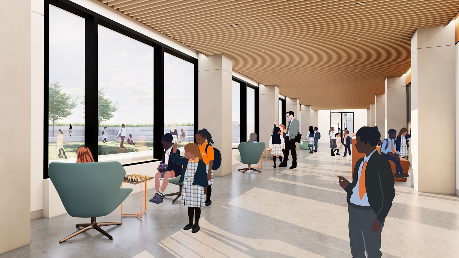 Dedicated wings for elementary, middle, and high schools. In one safe, beautiful campus.